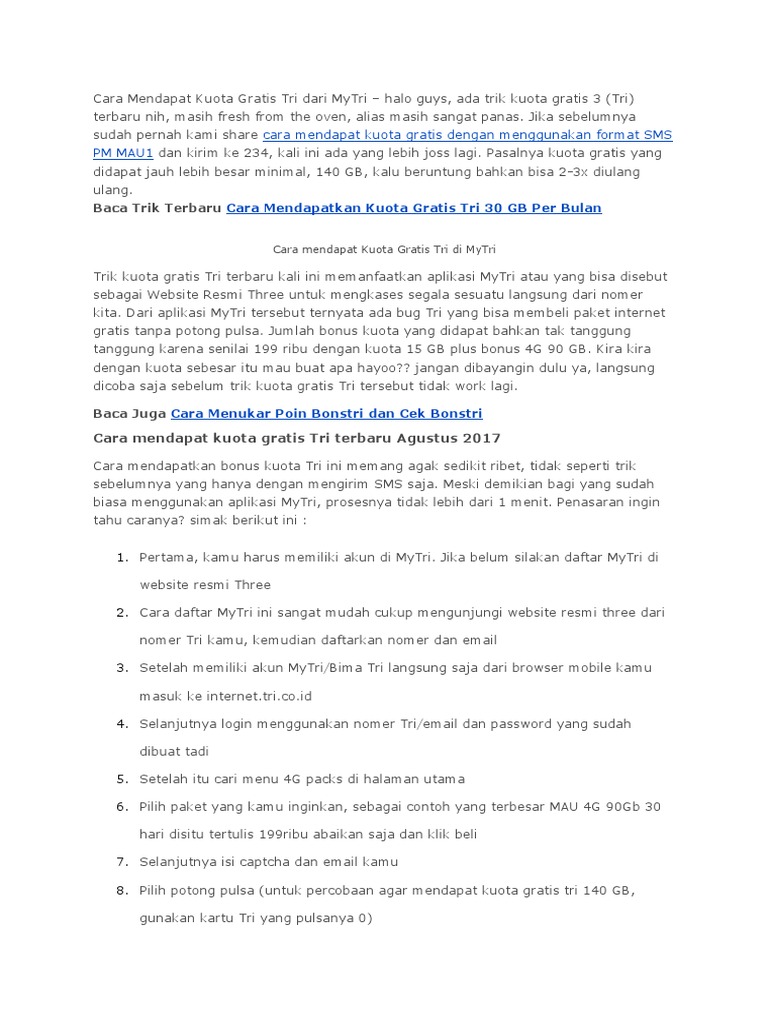 Cara Dapat Bonus Kuota 3 Tri Gratis 9gb Begini Triknya