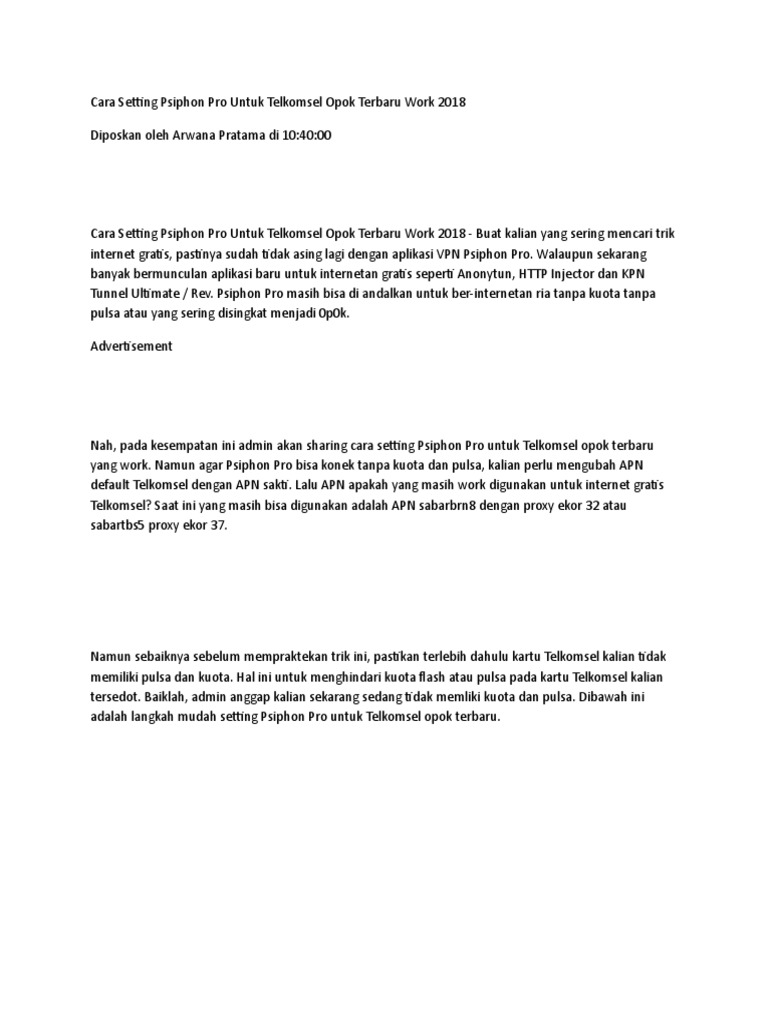 Internet Gratis Nol Pulsa Nol Kuota Telkomsel Psiphon