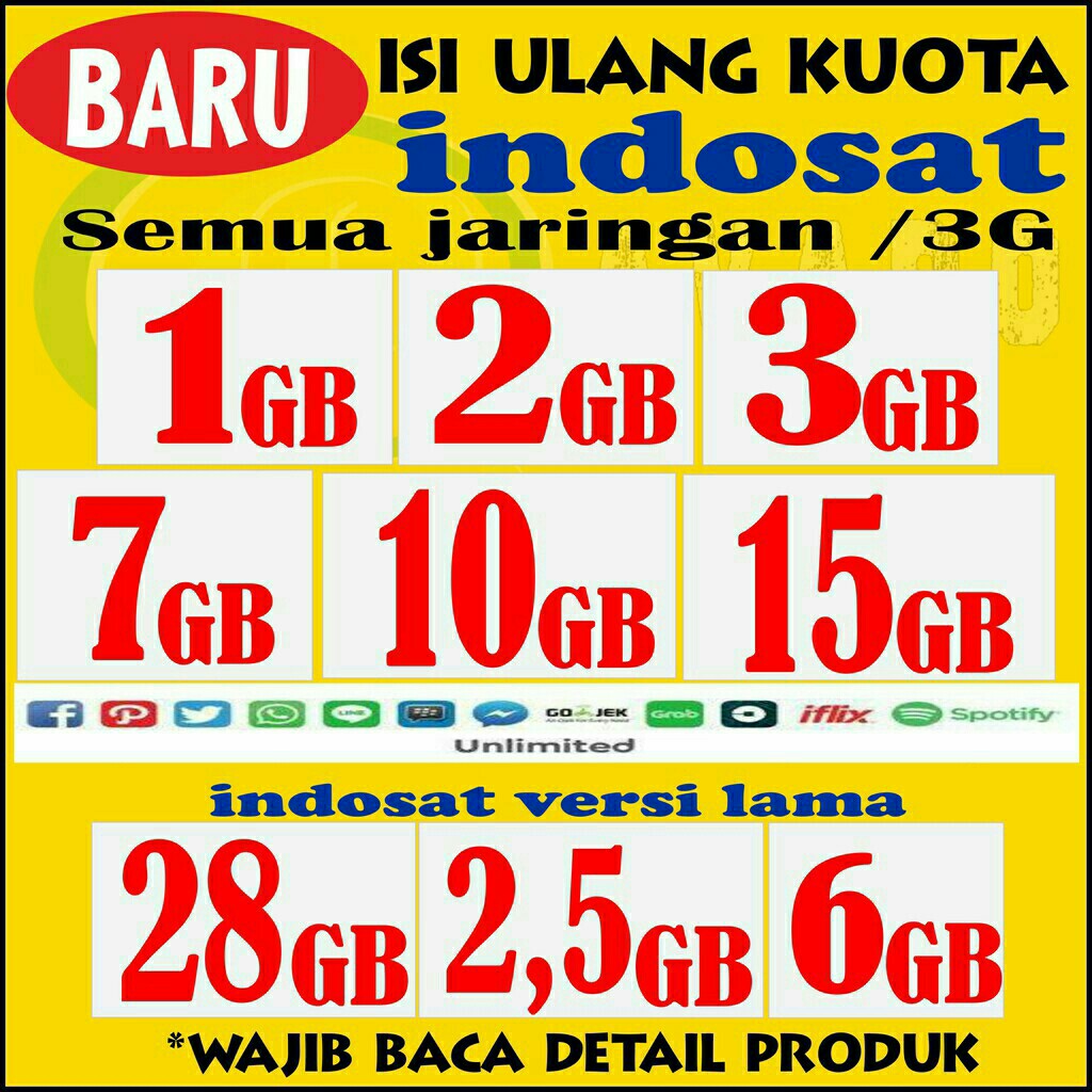 Promo Kuota Indosat Unlimited Youtube 1gb 2gb 3gb 7gb 10gb 15gb Inject Paket Data Internet